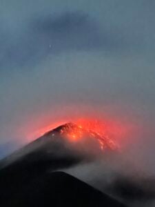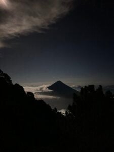 This hike was an all-day adventure. We started off hiking up Volcano Acatenango, which is an inactive volcano. We hiked 10 miles up this volcano to a base camp, where we dropped some stuff off, and had a small break. Then many of us chose to venture on, and hike up Volcano Fuego, which is an active volcano. This was quite an adventure, because to hike up Fuego, we had to hike down Acatenango, then back up Fuego. Oh and… all of this happened in the dark.