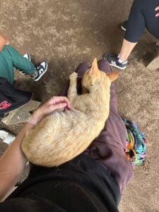 As we were talking with the family, the sweetest thing happened to me. As I’m sitting there listening to this lady’s story, despite all those dogs barking so violently as we pulled up to the house, I look down at my feet, and there is a sweet orange cat rubbing against my leg! The cat ends up jumping into my lap to cuddle and while I pet it the entire time of the house visit! I actually tear up as this happens. I have been praying that God would reveal to me that he knows the desires of my heart, and he wants to give me good gifts. I know that during this house visit, we were there to serve the family, and we did serve them well, but the Lord also gave me such a sweet gift in that cat. I felt like he was saying “Here my daughter. I see you. I know what you love, and what you want. Here is a reminder of that, and know that I will give you good things in unexpected times.”